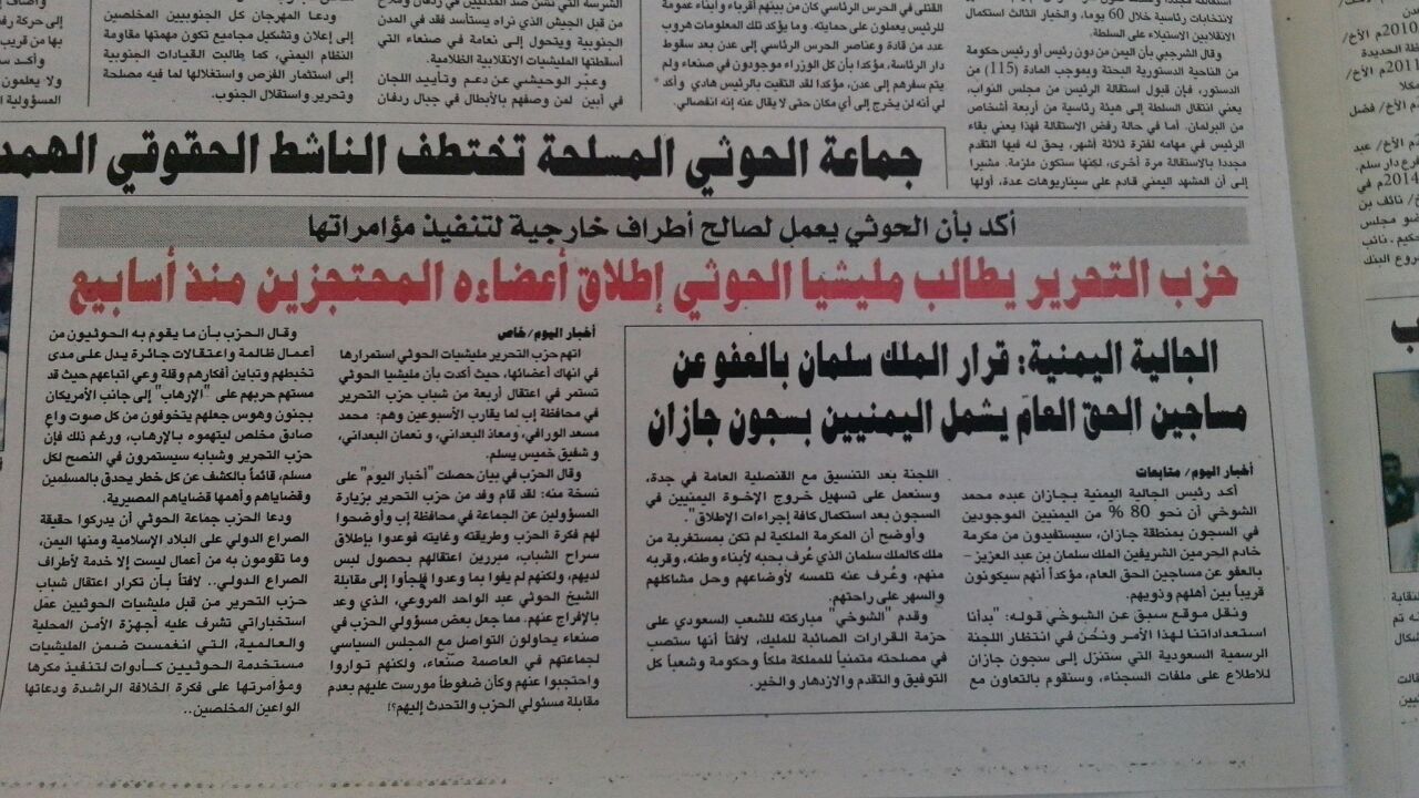 (صحيفة الشارع واخبار اليوم واليمن اليوم حول البيان الثاني بخصوص المعتقلين)