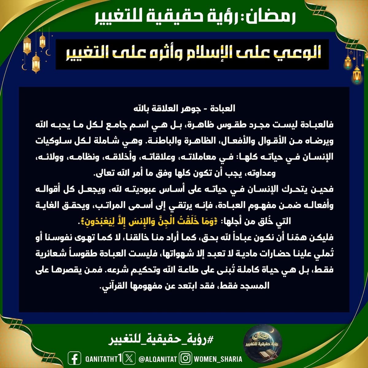 القسم النسائي يقدم سلسلة رمضانية "نبراس العبادات"
