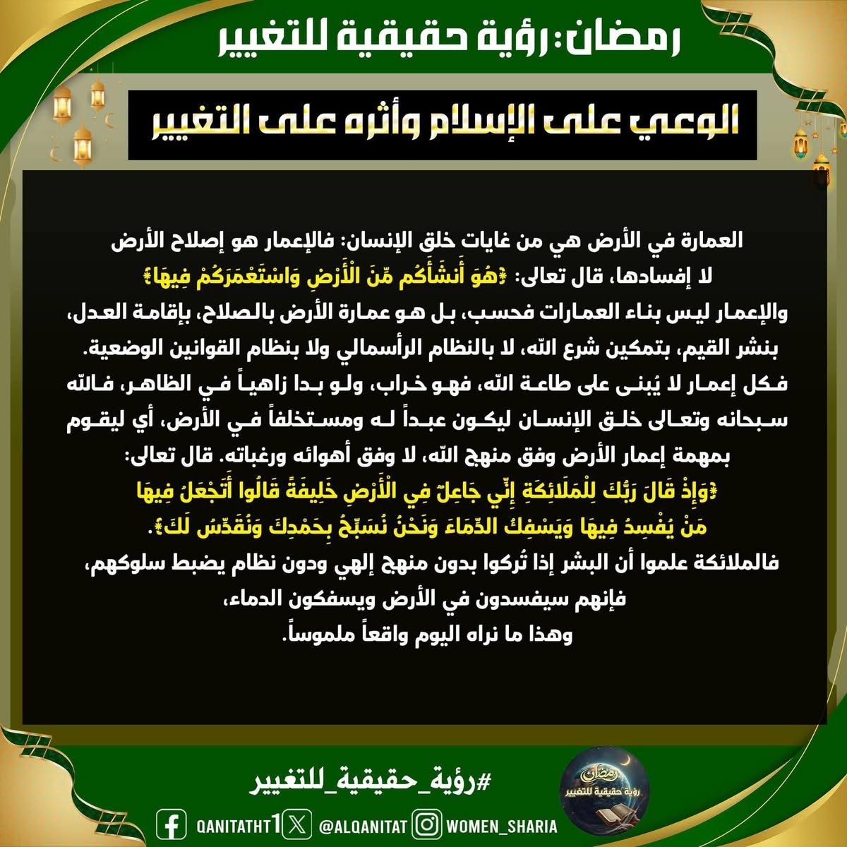 المكتب المركزي: حملة القسم النسائي "رمضان.. رؤية حقيقية للتغيير"