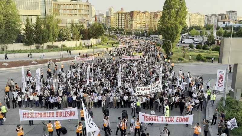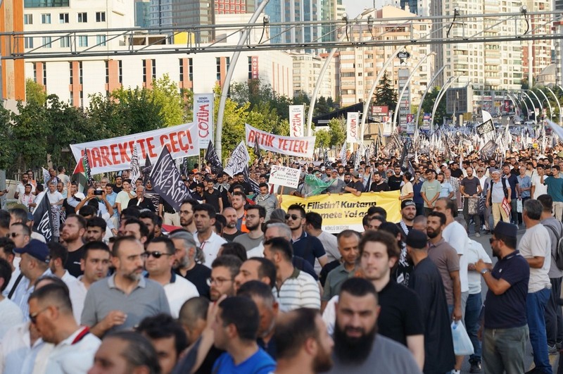 Kwa kuzingatia mauaji ya kikatili (mauaji ya halaiki) ambayo yamekuwa yakiendelea kwa muda wa miezi 21, yanayofanywa na umbile halifu la Kiyahudi dhidi ya Waislamu wasio na ulinzi katika Ukanda wa Gaza, ambayo yamesababisha kuuawa shahidi, kujeruhiwa na kupotezwa kwa zaidi ya wanaume na wanawake 200,000 Waislamu hadi sasa. Hizb ut Tahrir / Wilayah ya Uturuki iliandaa matembezi makubwa ya halaiki kote nchini Uturuki licha ya serikali ya Uturuki kuyapiga marufuku yenye kichwa:
