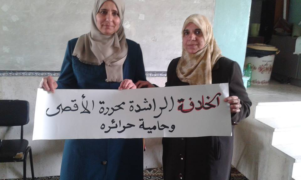 دعما للحملة التي يقوم بها القسم النسائي في المكتب الإعلامي المركزي لحزب التحرير "الخلافة محررة الأقصى وحامية حرائره"، فقد عقدت شابات حزب التحرير في مسجد الشهداء في المنطقة الجنوبية في الخليل ندوة بعنوان "أين الخليفة محرر مسرى رسول الله ومنقذ الأقصى؟"، وقد حضرها عدد جيد من الأخوات في المنطقة.