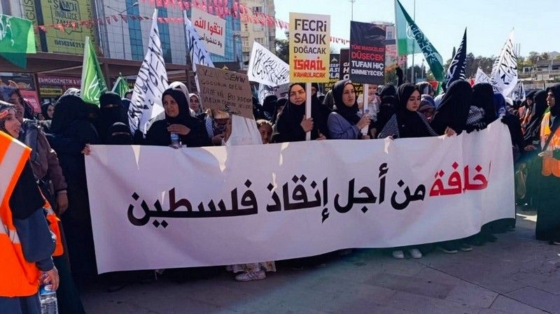 في المسيرة التي نظمها حزب التحرير / ولاية تركيا وانضمت تحت لوائها العديد من المنظمات المدنية الإسلامية بالاشتراك مع "دار التغيير الجذري" تحت شعار "لنتحد من أجل غزة" دفاعاً عن المسلمين العزل الذين تُركوا وحيدين تحت نير الإبادة الجماعية والحصار والاحتلال المستمر منذ 24 شهراً، وجه المتظاهرون نداءً إلى النظام التركي تحت شعار "سنتان مرتا، لا ننتظر أقوالاً بل أفعالاً!".