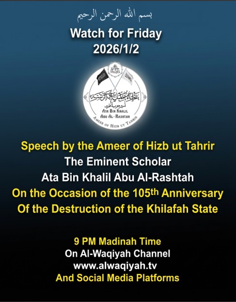 ذكرى هدم الخلافة توجب العمل لإقامتها 25من رجب 1447هـ الموافق 14 كانون الثاني/يناير 2026م |