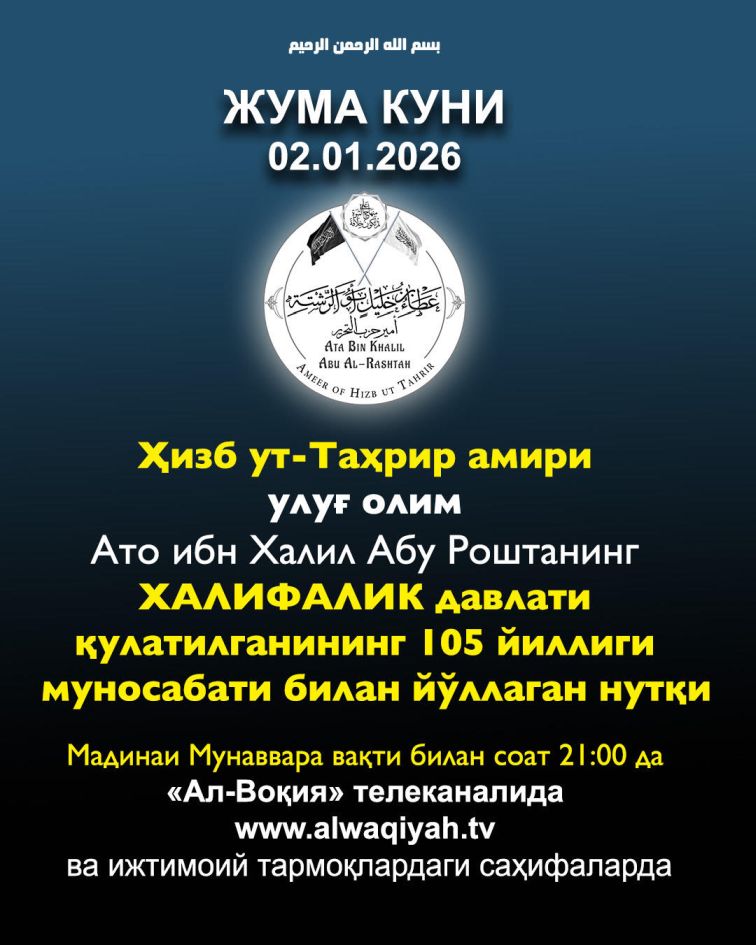 في الذكرى الـ105 لهدم الخلافة عزم يتجدد وأمل يتعاظم 25من رجب 1447هـ الموافق 14 كانون الثاني/يناير 2026م |