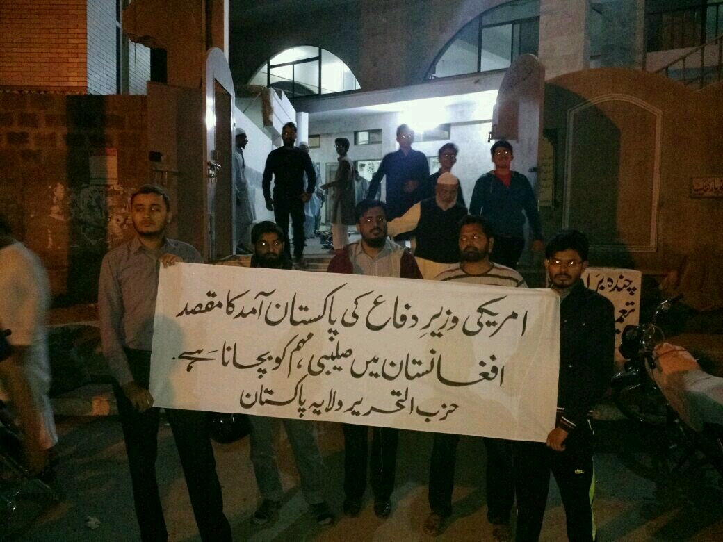 نظّم حزب التحرير / ولاية باكستان مظاهرات في جميع أنحاء البلاد ضد زيارة وزير الدفاع الأمريكي جيمس ماتيس، وقد حمل المتظاهرون لافتات كتب عليها "زيارة وزير الدفاع الأمريكي هي لإنقاذ الحملة الصليبية في أفغانستان" و"الترحيب بالجزار الأمريكي هو خيانة لدماء المسلمين".