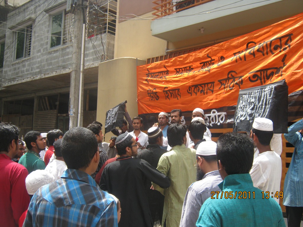 ألقى أعضاء حزب التحرير مجموعة من الكلمات بعد صلاة الجمعة 27-5-2011 خارج المساجد في دكا وشتغونغ وسلهت، حيث أكدوا في الكلمات أنّ العقيدة الإسلامية هي العقيدة الصحيحة وهي ما يجب أن تقوم عليه الدولة، في الوقت الذي ردت فيه حكومة رابطة عوامي وحزب الشعب البنغالي الإسلام كأساس للحكم، وبدلا منه تبنت عقيدة ما يسمى بعقيدة أبائهم وأجدادهم لتخالف بذلك النص القرآني الصريح القائل ((وَإِذَا قِيلَ لَهُمْ اتَّبِعُوا مَا أَنزَلَ اللَّهُ قَالُوا بَلْ نَتَّبِعُ مَا أَلْفَيْنَا عَلَيْهِ آبَاءَنَا أَوَلَوْ كَانَ آبَاؤُهُمْ لاَ يَعْقِلُونَ شَيْئًا وَلاَ يَهْتَدُونَ)).