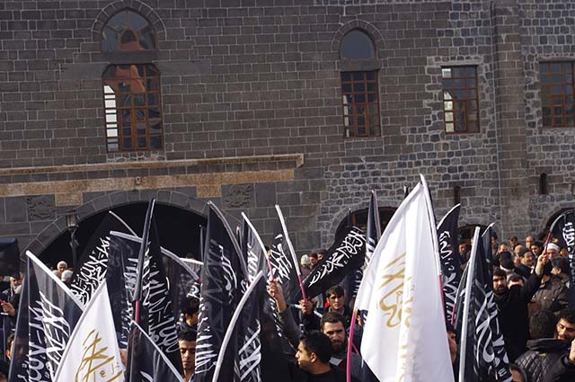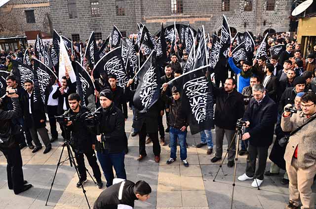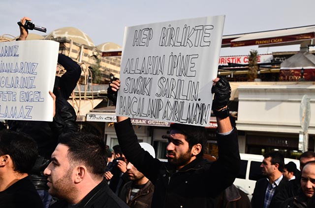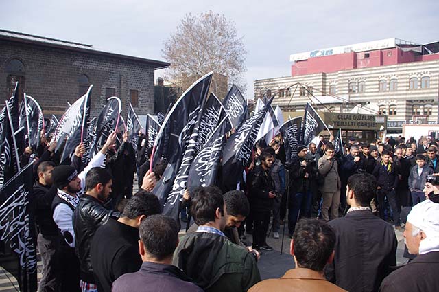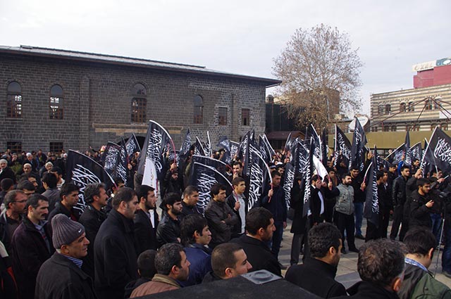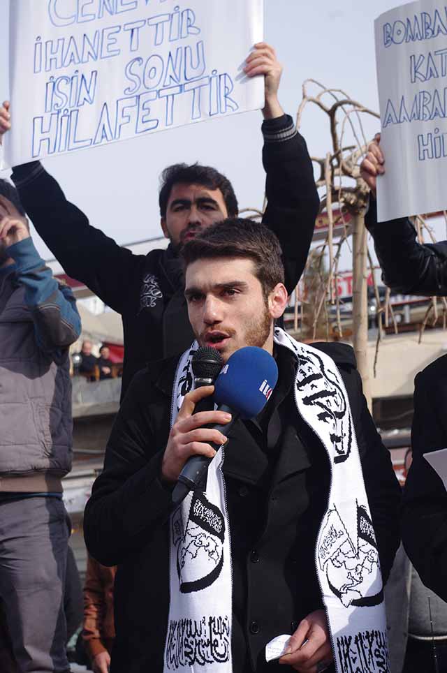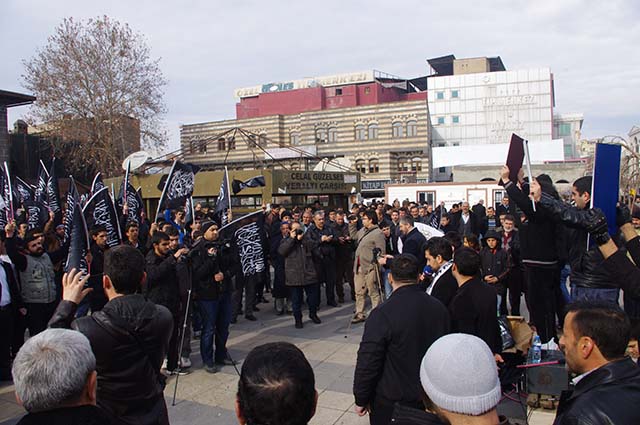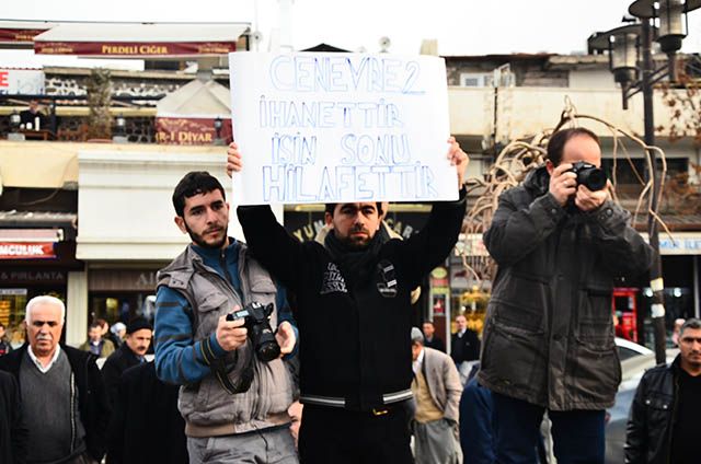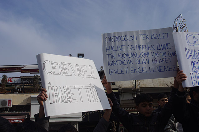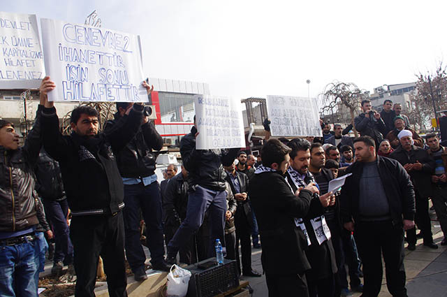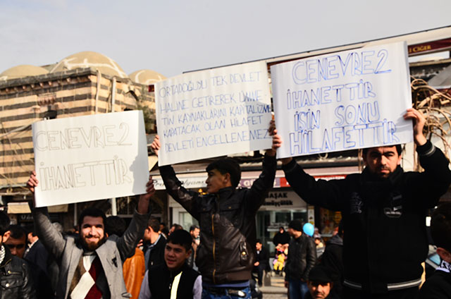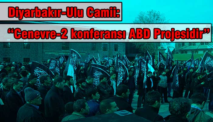 ولاية تركيا: وقفة في دياربكر لرفض مؤتمر جنيف-2 نظم شباب وأنصار حزب التحرير / ولاية تركيا في جامع أُولو بديار بكر وقفة قرأ فيها بيان صحفي للتأكيد على أن مؤتمر جنيف-2 هو مؤتمر تآمري خياني.. الجمعة، 16 ربيع الأول 1435هـ الموافق 17 كانون الثاني/يناير 2014م