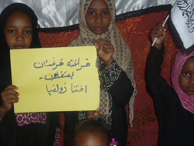 أشبال وزهرات حزب التحرير / ولاية السودان ينتصرن لأختهن زولفيا أمانوفا ويطالبن بالإفراج الفوري عنها رجب الفرد 1435هـ - أيار/مايو 2014م