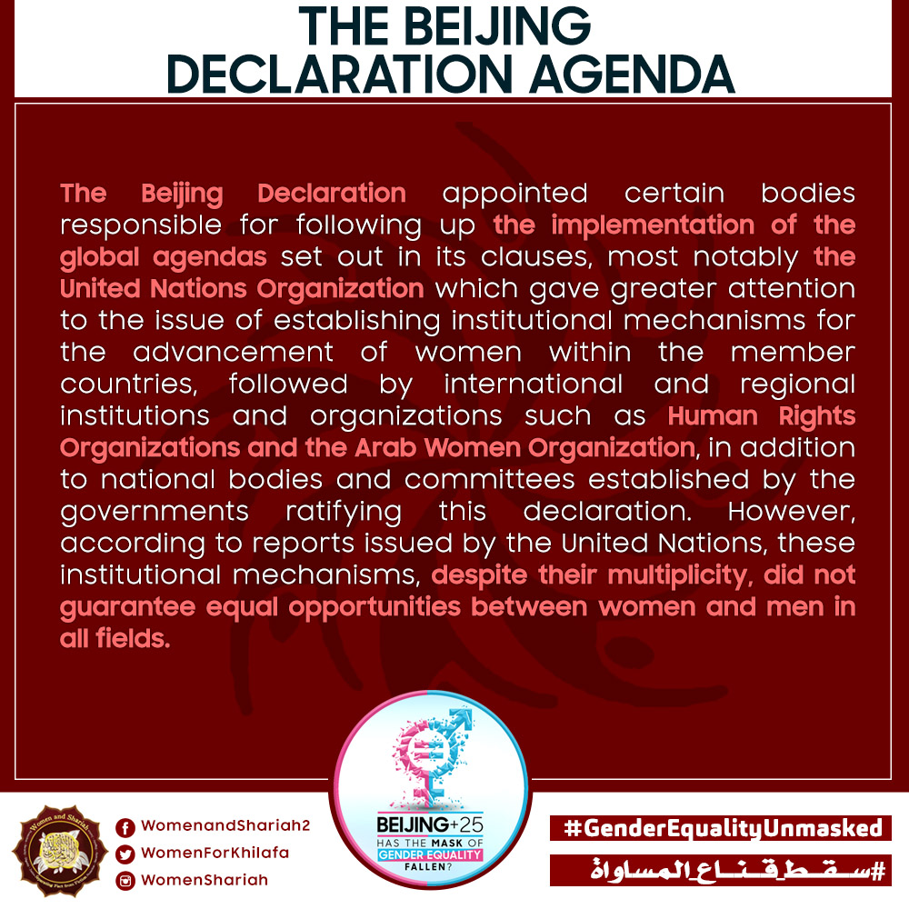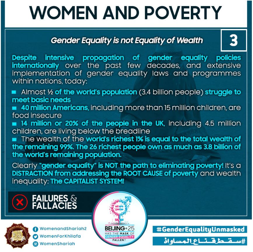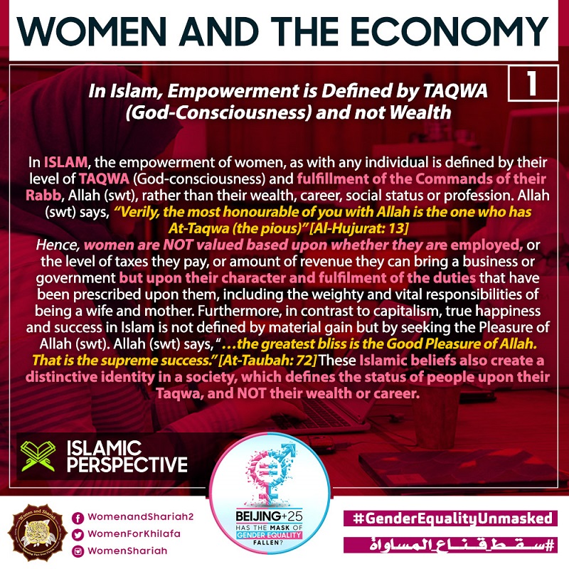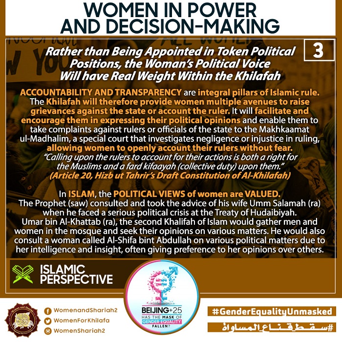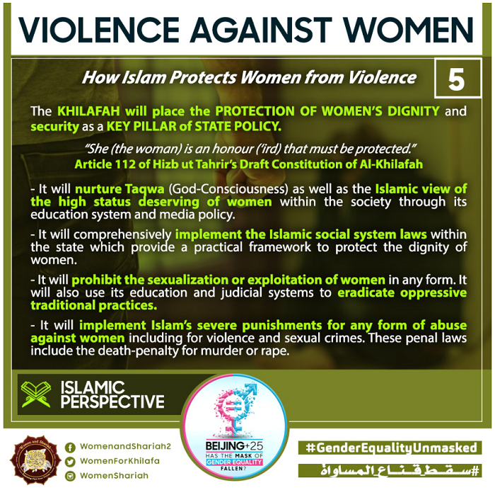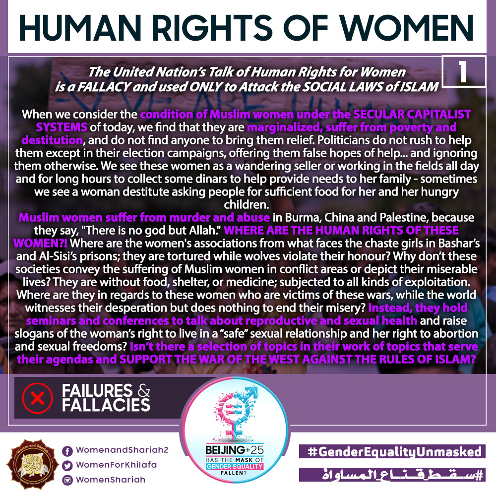 This March, the Women’s Section in the Central Media Office of Hizb ut Tahrir launched a global campaign entitled, “Beijing+25: Has the Mask of Gender Equality Fallen?” The campaign will seek to challenge the dominant narratives of ‘Gender Equality’ and its claims of advancing women’s rights and the progress of nations, and present Islam’s unique comprehensive blueprint of detailed principles, laws and systems as implemented by its political system, the Khilafah (Caliphate) based upon the method of the Prophethood, that would provide an alternative credible vision to raise the status of women, secure their rights, elevate their standard of living and achieve true progress within a state.