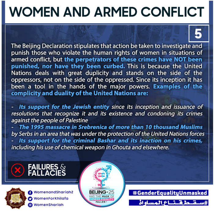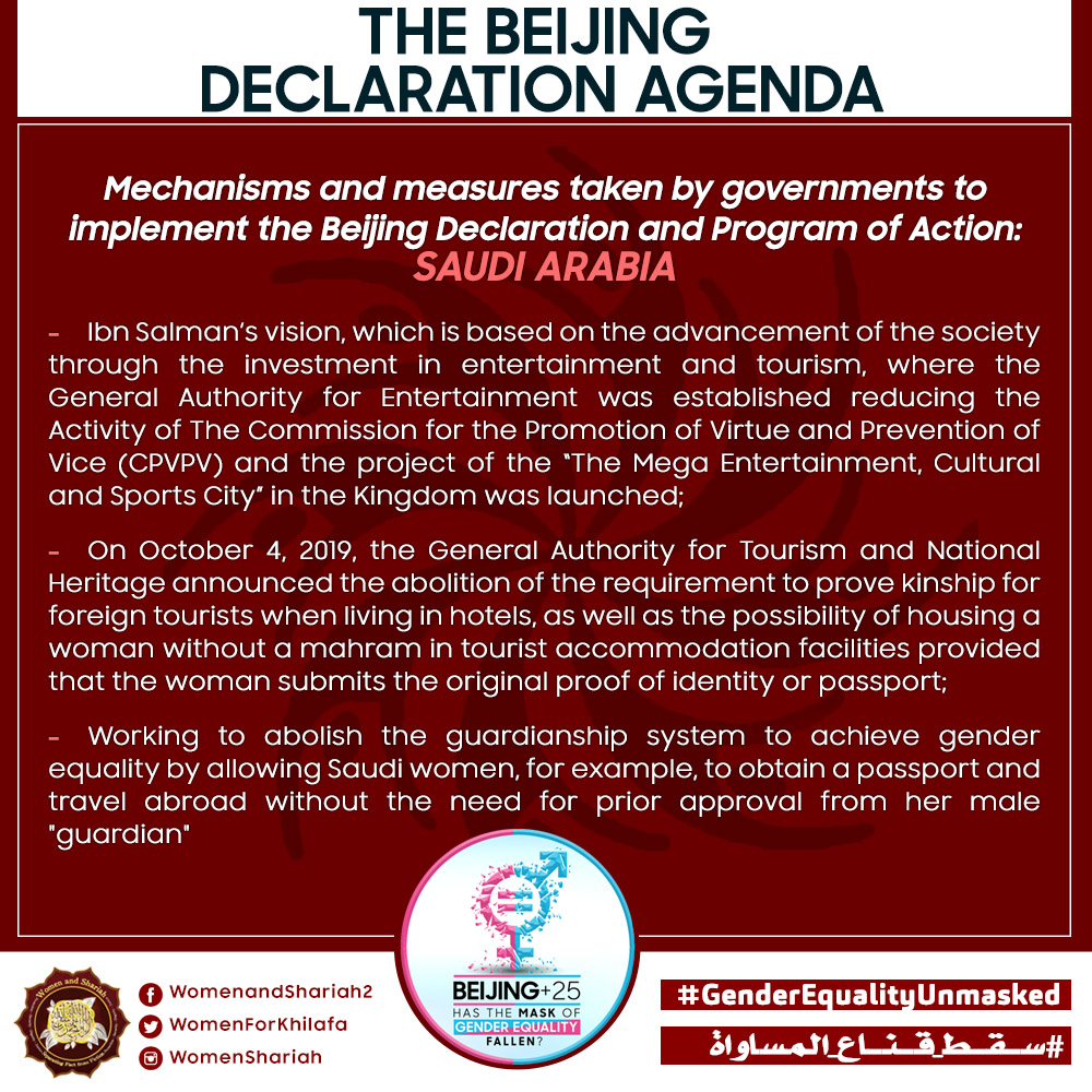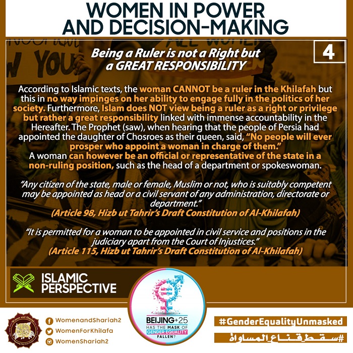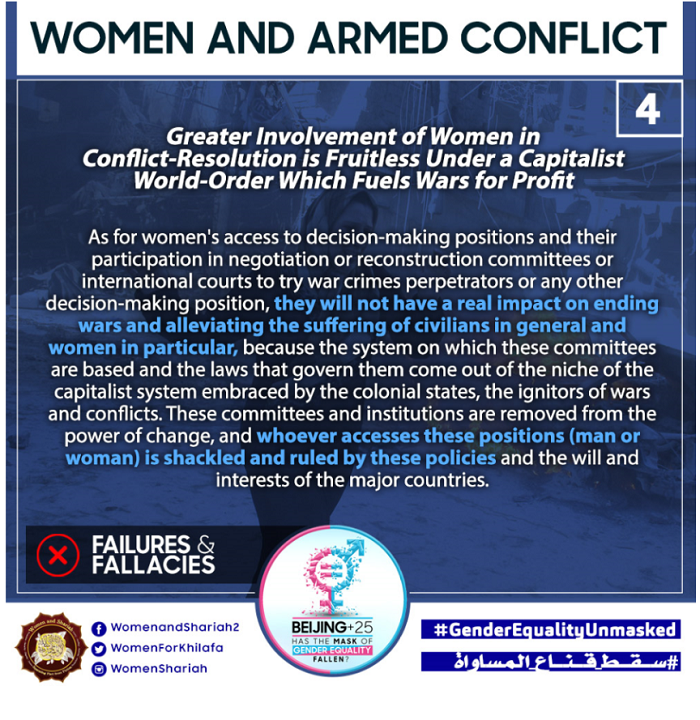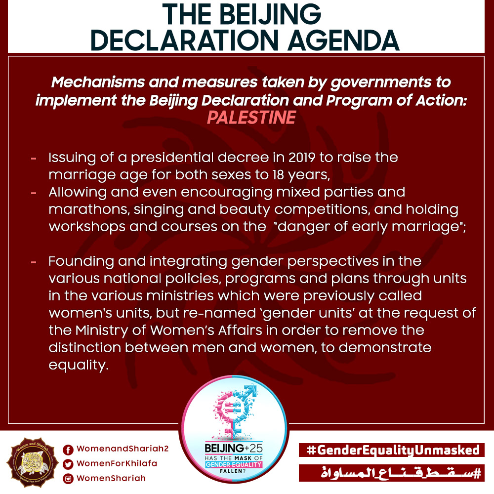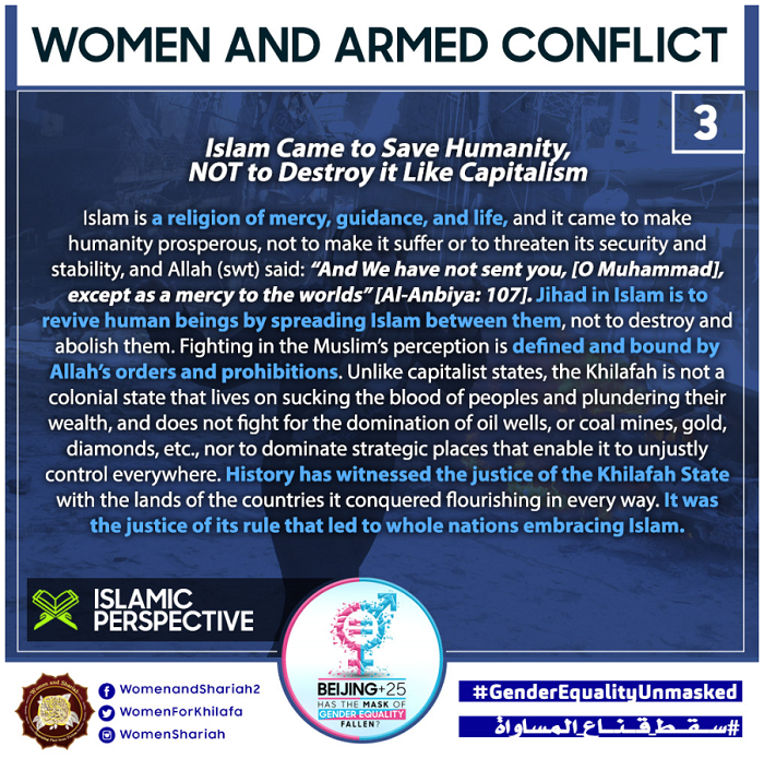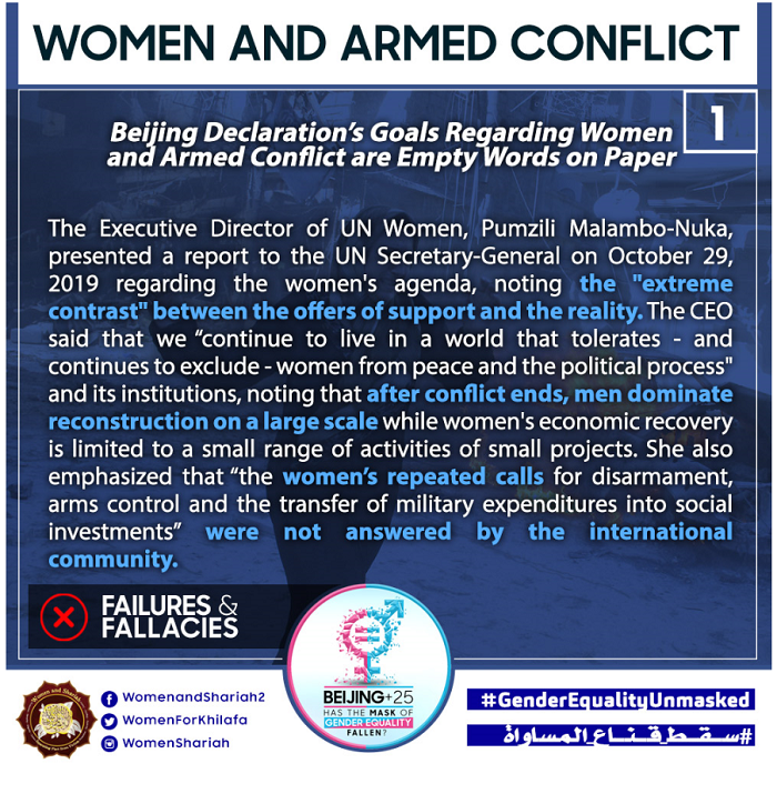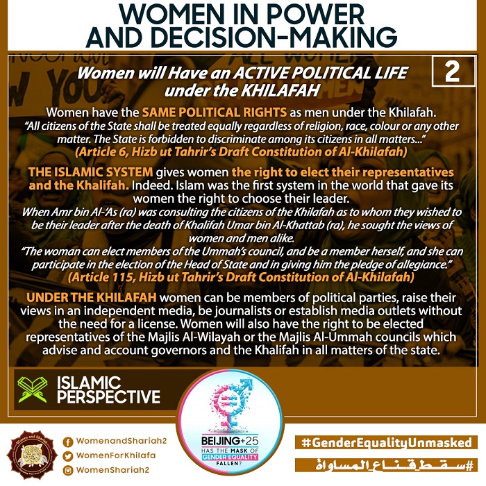This March, the Women’s Section in the Central Media Office of Hizb ut Tahrir launched a global campaign entitled, “Beijing+25: Has the Mask of Gender Equality Fallen?” The campaign will seek to challenge the dominant narratives of ‘Gender Equality’ and its claims of advancing women’s rights and the progress of nations, and present Islam’s unique comprehensive blueprint of detailed principles, laws and systems as implemented by its political system, the Khilafah (Caliphate) based upon the method of the Prophethood, that would provide an alternative credible vision to raise the status of women, secure their rights, elevate their standard of living and achieve true progress within a state.