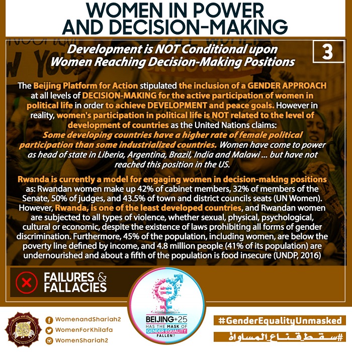 Over many decades, ‘Gender Equality’ has become a marker internationally of civilized, progressive states, and a measure of how well nations treat their women. It is also viewed by many as the unquestionable means to empower all women, improve their quality of life, and advance the development of nations. However, twenty-five years on from the BPfA, and its intensive agenda to further the cause of gender equality globally, the political, economic, environmental and social problems facing Muslim women across the world, and indeed women internationally, remains dire and are worsening by the day. The promises of bringing empowerment and improvement to their lives has not been delivered.