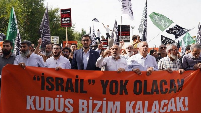 د ماسپښين تر لمانځه وروسته، په استانبول کې له «فاتح جومات» څخه تر «بېيازيت مېدان» پورې، په انقره کې له «کوچاتپه جومات» څخه تر «صحیه مېدان» پورې او په شانلي اورفا کې له «علي شلي پارک» څخه تر «رابعه مېدان» پورې مسلمانانو د «لا اله الا الله» بيرغونو، تکبيرونو او ترانو تر سيورې لاندې د طوفان الأقصی او د غزې د خلکو هرکلی وکړ او تاريخي صحنې يې جوړې کړې.