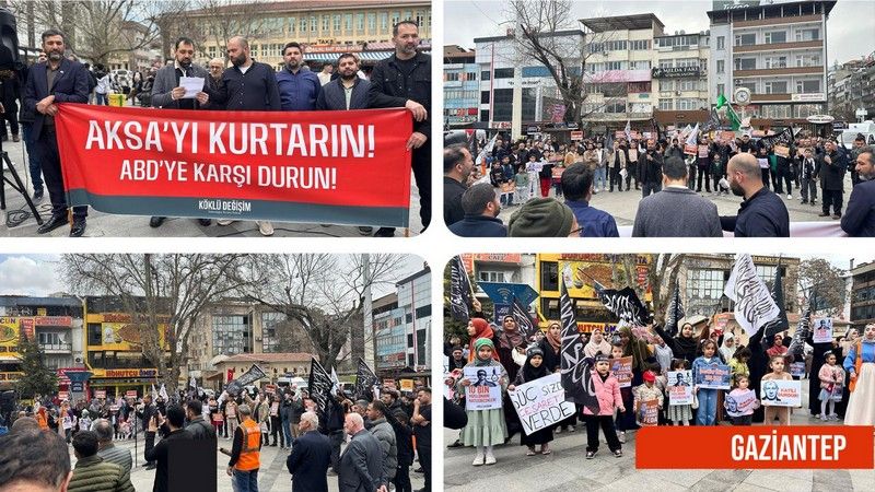 حزب التحریر ولایه ترکیې د ترکیې په بېلابېلو سیمو کې د عامه لاریونونو او مطبوعاتي بیانونو له لارې، چې د «اقصی وژغورئ! د امریکا پر ضد ودرېږئ!» تر شعار لاندې تنظیم شوي وو، د یهودو د غاصب دولت ظلم، د امریکا استعماري تکبر، او د اسلامي خاورو د واکمنانو چوپتیا وغندله.