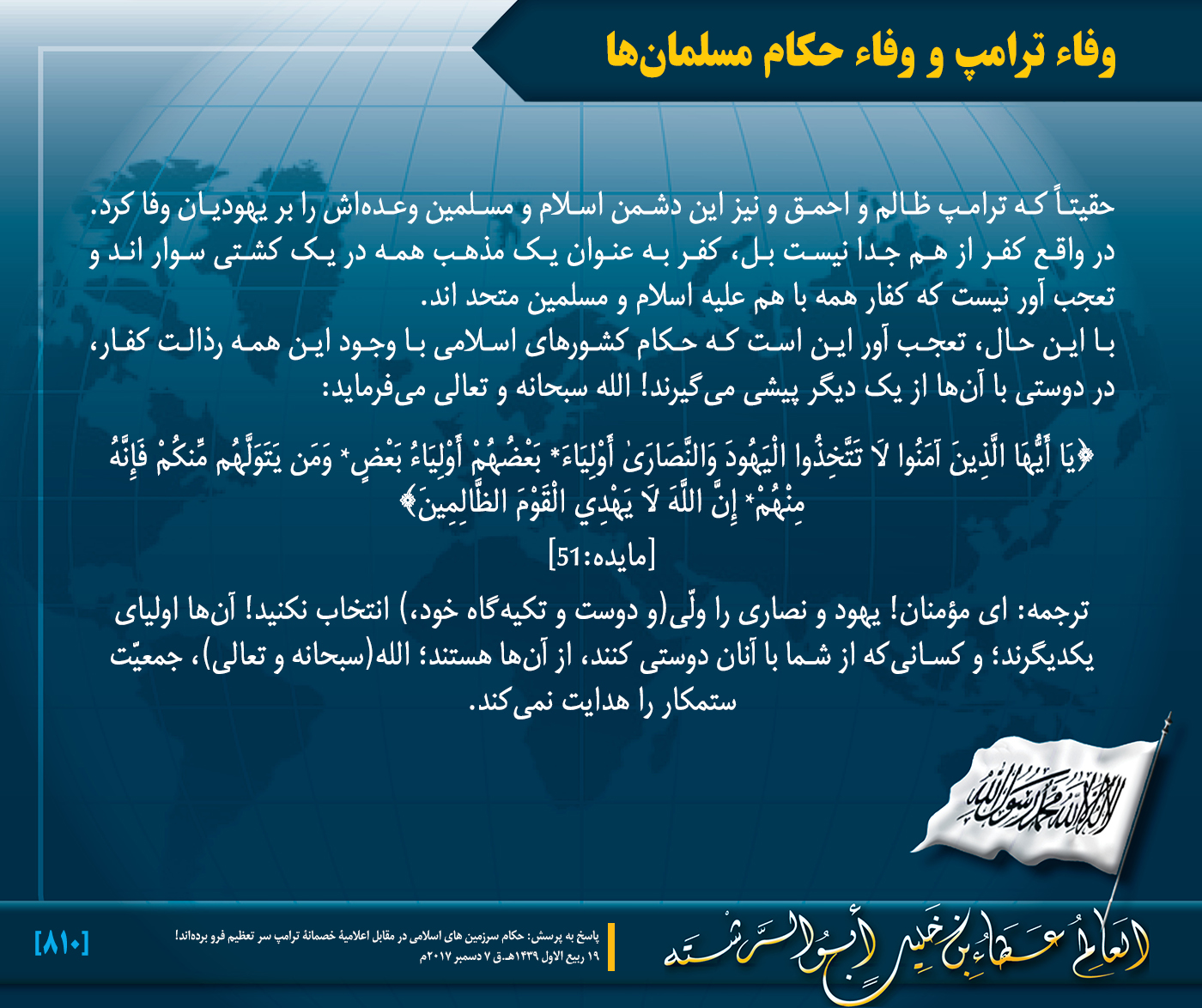 19 ربیع الاول 1439 مطابق پنج شنبه, 07 دسامبر 2017م بسم الله الرحمن الرحيم وفاء ترامپ و وفاء حکام مسلمانها مطالب مرتبط: « اعتراف امریکا به دولت یهود روسیه و قدرت بزرگ » ابراز نظر نمایید اسم * ایمیل * آدرس انترنتی دو کلمه زیر را وارد نمایید! پیام * پیام تان... back to top