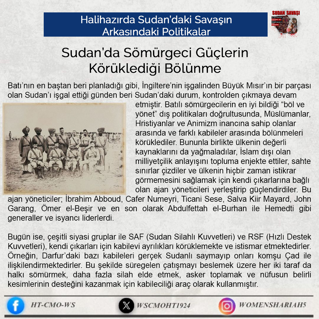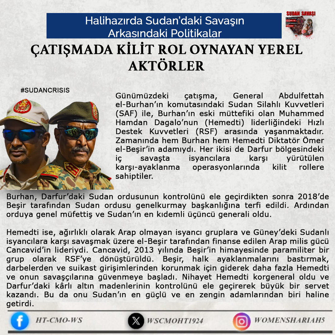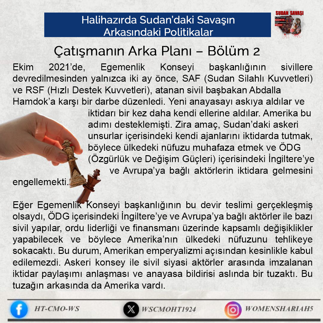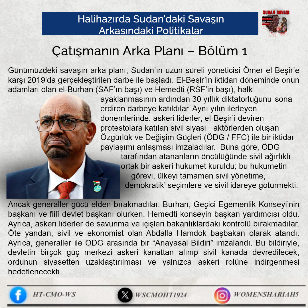 Sudan'daki kardeşlerimizin halini Allah'a şikayet ediyoruz; zira oradaki kardeşlerimizin haksız yere canları alınmakta, kadınlar tecavüze uğramakta ve mülkiyetler çalınmaktadır. Tüm bunlar ise iktidarda olanların ve onlarla savaşanların gözü ve kulağı önünde gerçekleşmektedir; zira onlar kardeşlerimiz hakkında Allah'tan hiç korkmuyorlar; çünkü onların önemsedikleri şey insanların işleri, onların hayatları ve mülkiyetleri değildir, aksine onların önemsedikleri şey, sadece kendi koltukları ve çıkarlarıdır!!