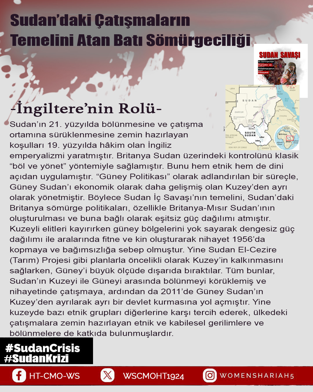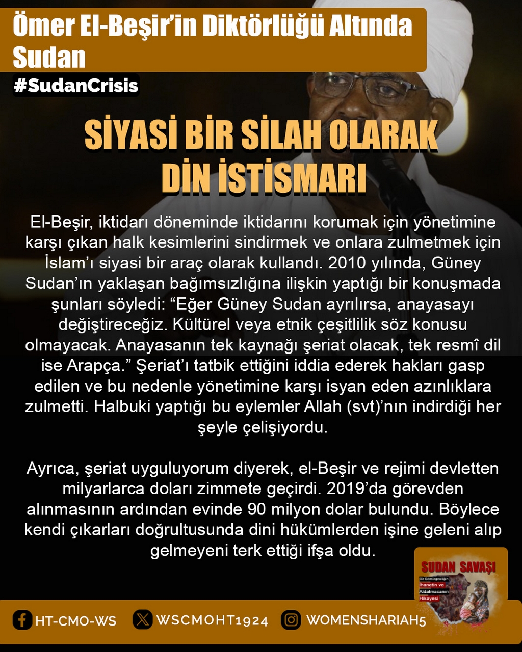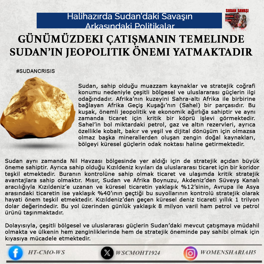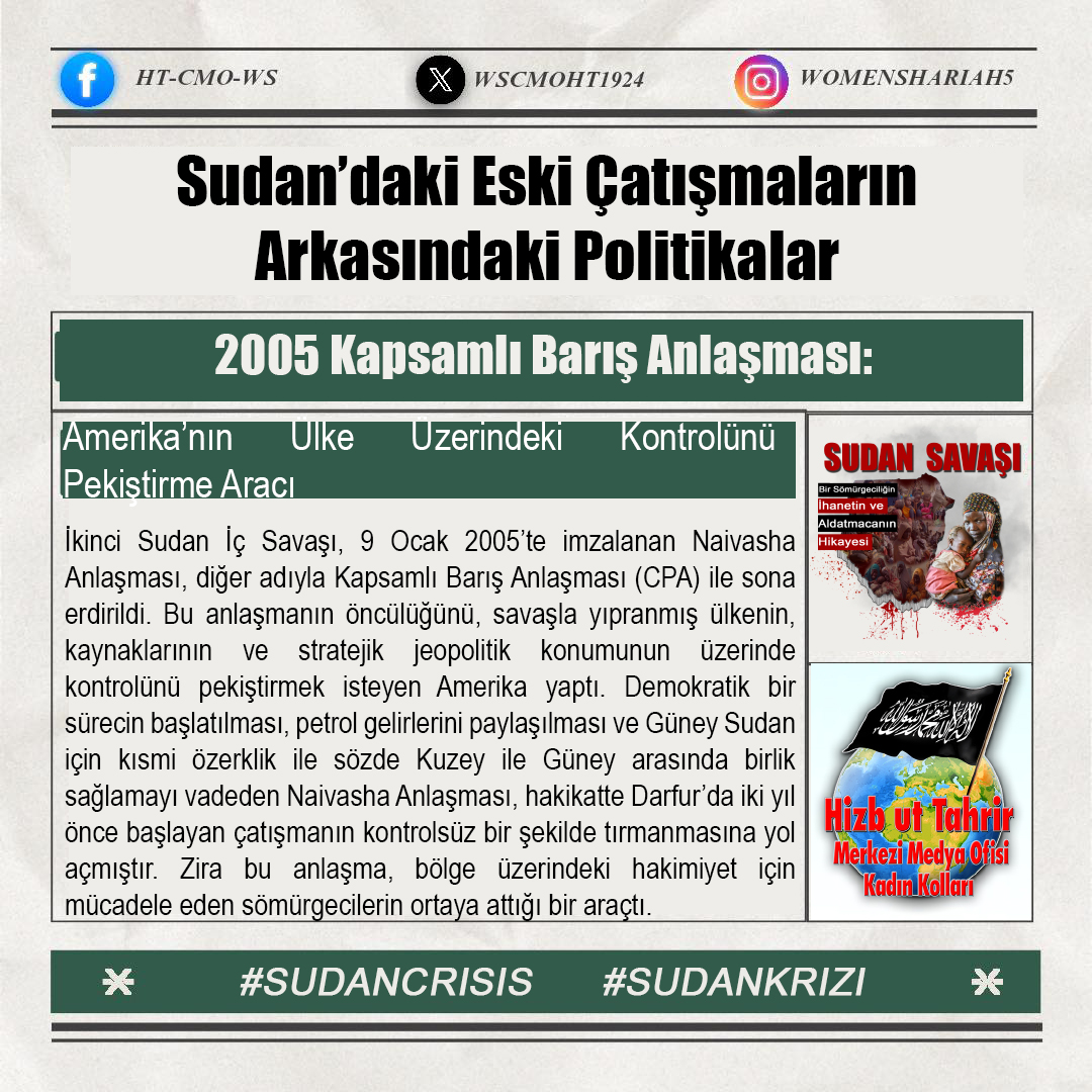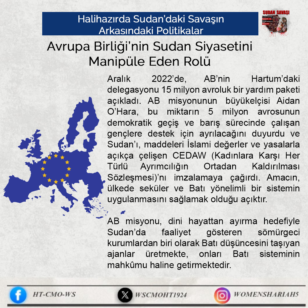 Sudan'daki kardeşlerimizin halini Allah'a şikayet ediyoruz; zira oradaki kardeşlerimizin haksız yere canları alınmakta, kadınlar tecavüze uğramakta ve mülkiyetler çalınmaktadır. Tüm bunlar ise iktidarda olanların ve onlarla savaşanların gözü ve kulağı önünde gerçekleşmektedir; zira onlar kardeşlerimiz hakkında Allah'tan hiç korkmuyorlar; çünkü onların önemsedikleri şey insanların işleri, onların hayatları ve mülkiyetleri değildir, aksine onların önemsedikleri şey, sadece kendi koltukları ve çıkarlarıdır!!