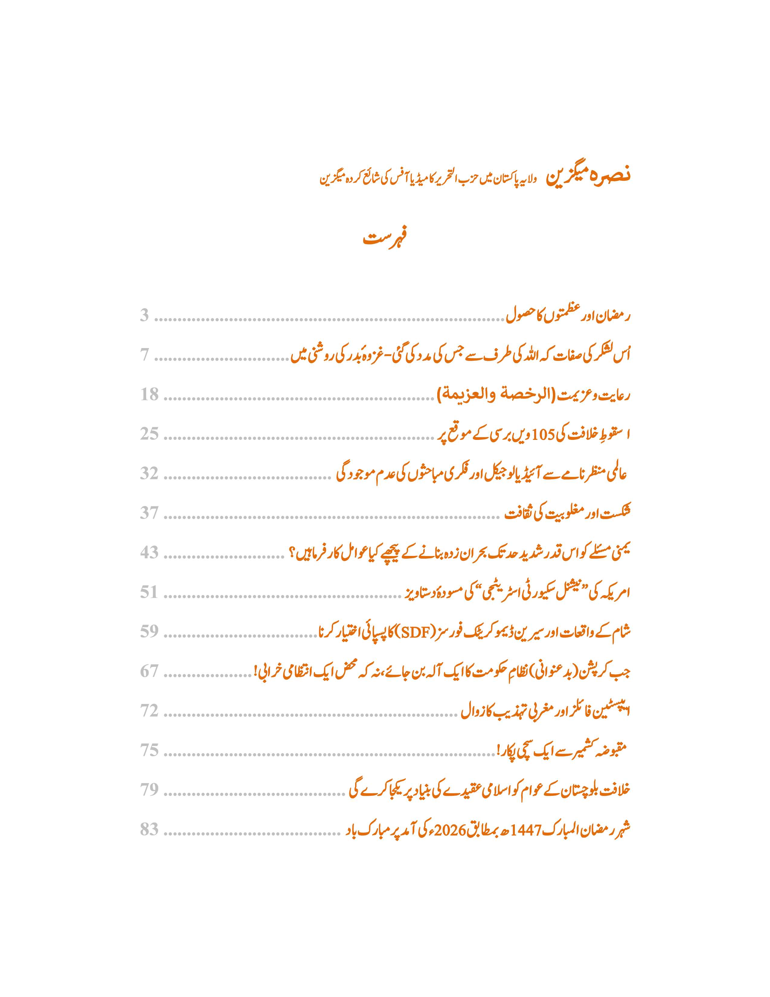 13 من رمــضان المبارك 1447هـ | پیر, 02 مارچ 2026 سب سے پہلے تبصرہ کرنے والے بنیں فونٹ سائز فونٹ سائز گھٹائیں increase font size بسم الله الرحمن الرحيم نصرة میگزین / شمارہ 89 ویب سائٹ رمضان - شوال 1447ھ - مارچ - اپریل 2026ء یہاں ڈاؤن لوڈ کریں Last modified onپیر, 02 مارچ 2026 07:57 Latest from مقبوضہ کشمیر کو پاکستانی مسلح افواج کے متحرک ہونے کی ضرورت ہے! الرایہ اخبار: شمارہ 588 کی نمایاں سرخیاں بے شک خلیفہ ڈھال ہے، جس کے پیچھے رہ کر جنگ کی جاتی ہے متفرقات الراية – شمارہ نمبر 588 امریکیوں کے شام کی التنف چھاؤنی چھوڑنے کے پسِ پردہ حقائق More in this category: « رایہ اخبا ر شمارہ نمبر 588 Leave a comment Make sure you enter the (*) required information where indicated. HTML code is not allowed. Name * ای میل * Website URL Enter the two words you see below Message * آپ کا پیغام یہاں درج کریں ... اوپر کی طرف جائیں