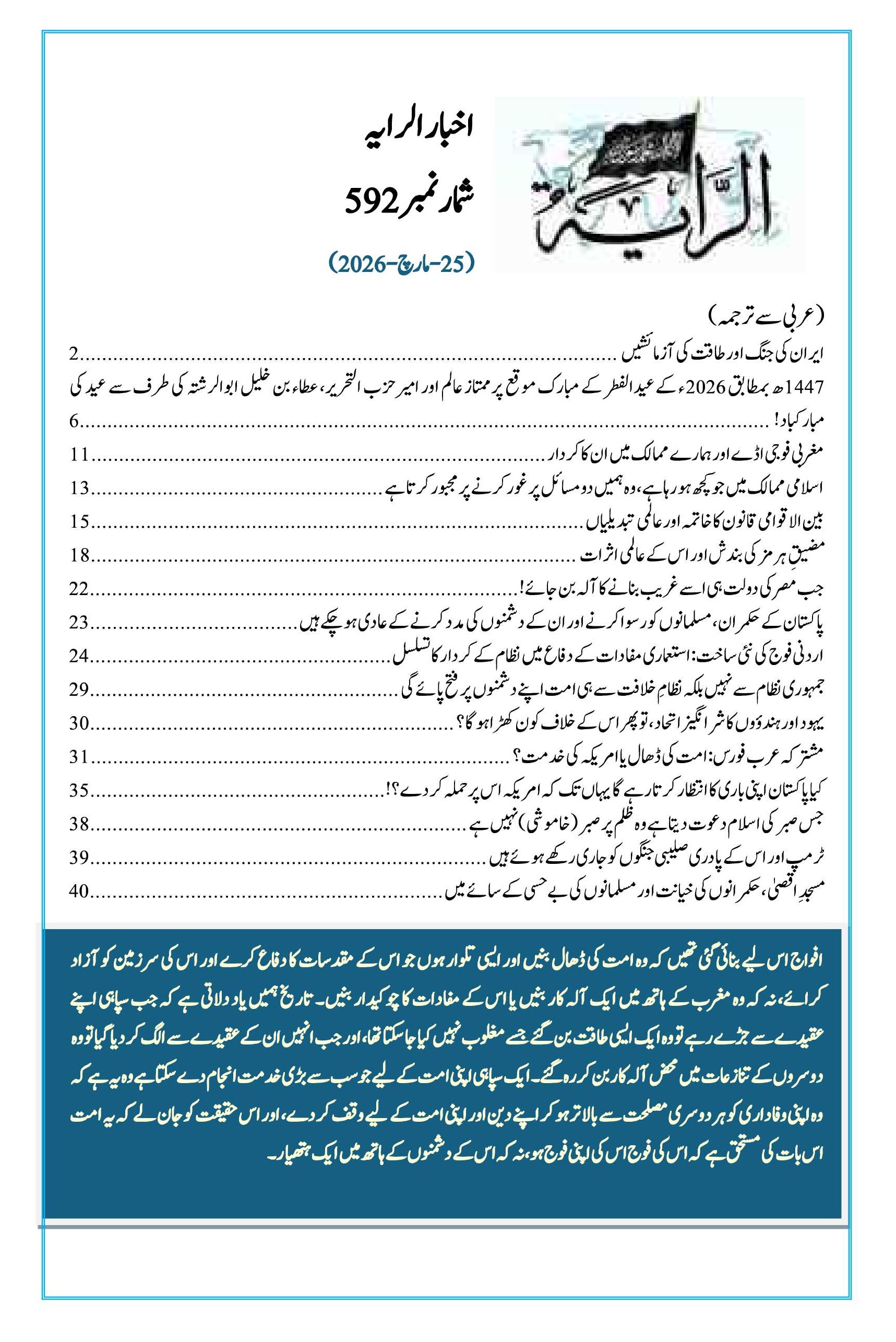 رایہ اخبا ر شمارہ نمبر 592