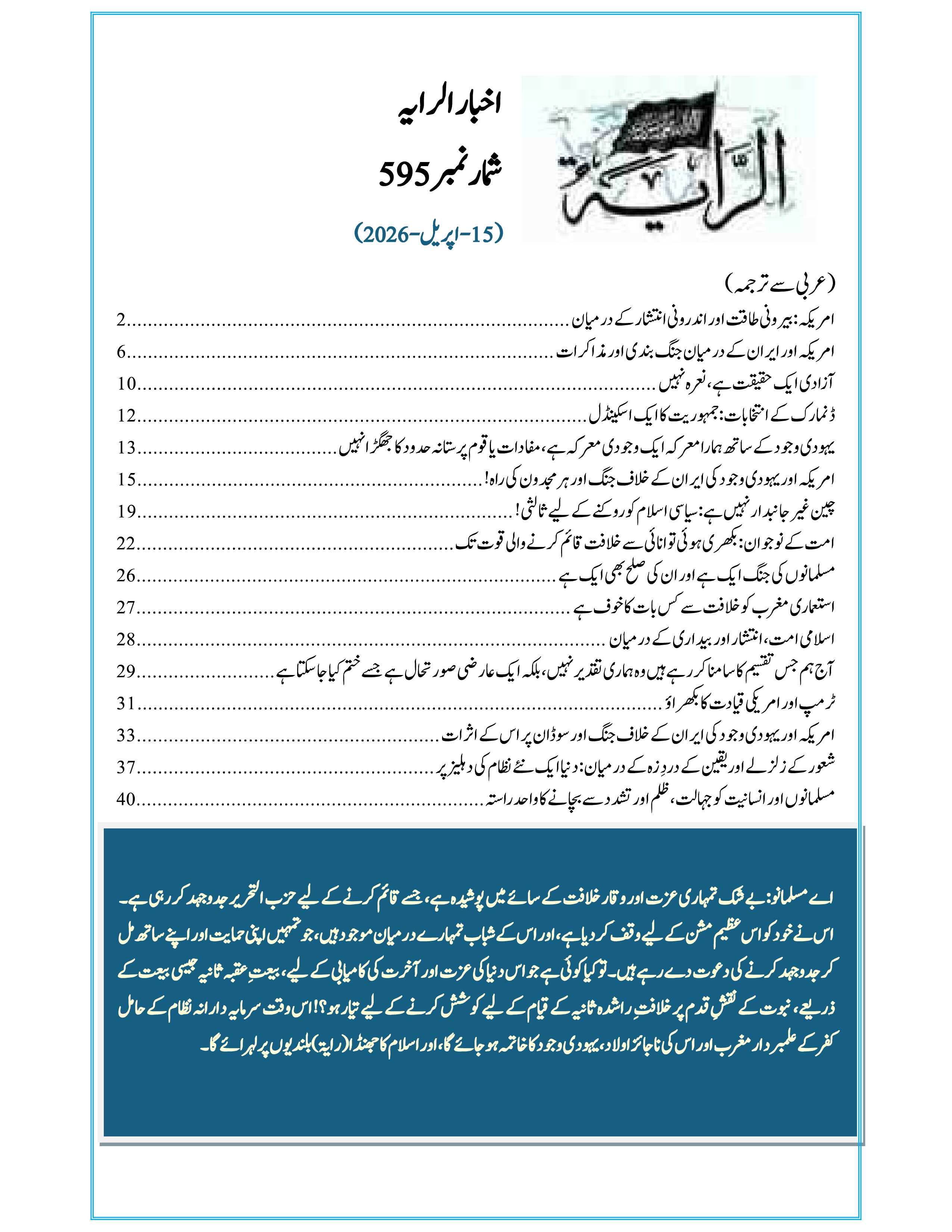 انگریزی میں رایہ اخبا ر انڈیکس کے لیے: یہاں کلک کریں