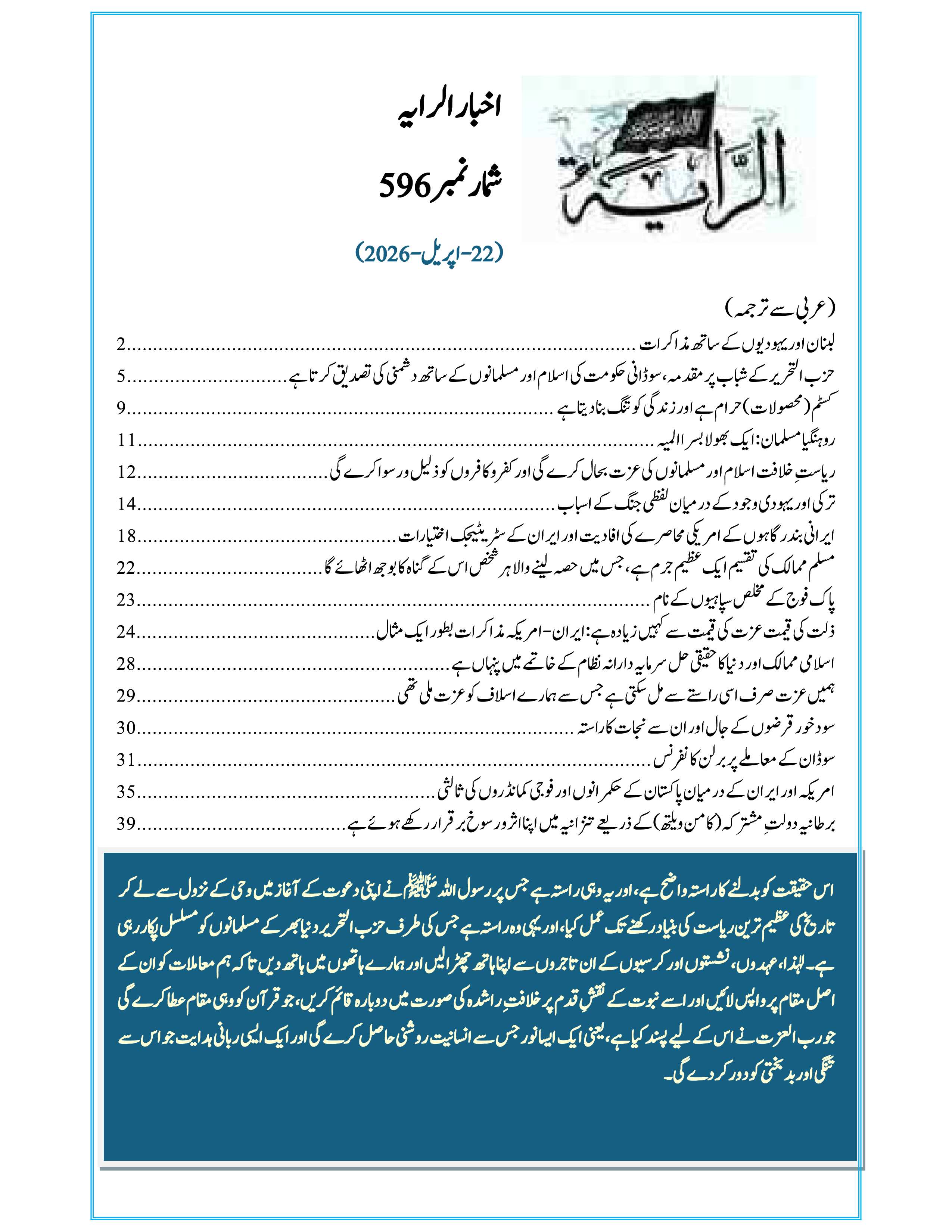 - الرایہ اخبار: شمارہ (596) کی نمایاں سرخیاں